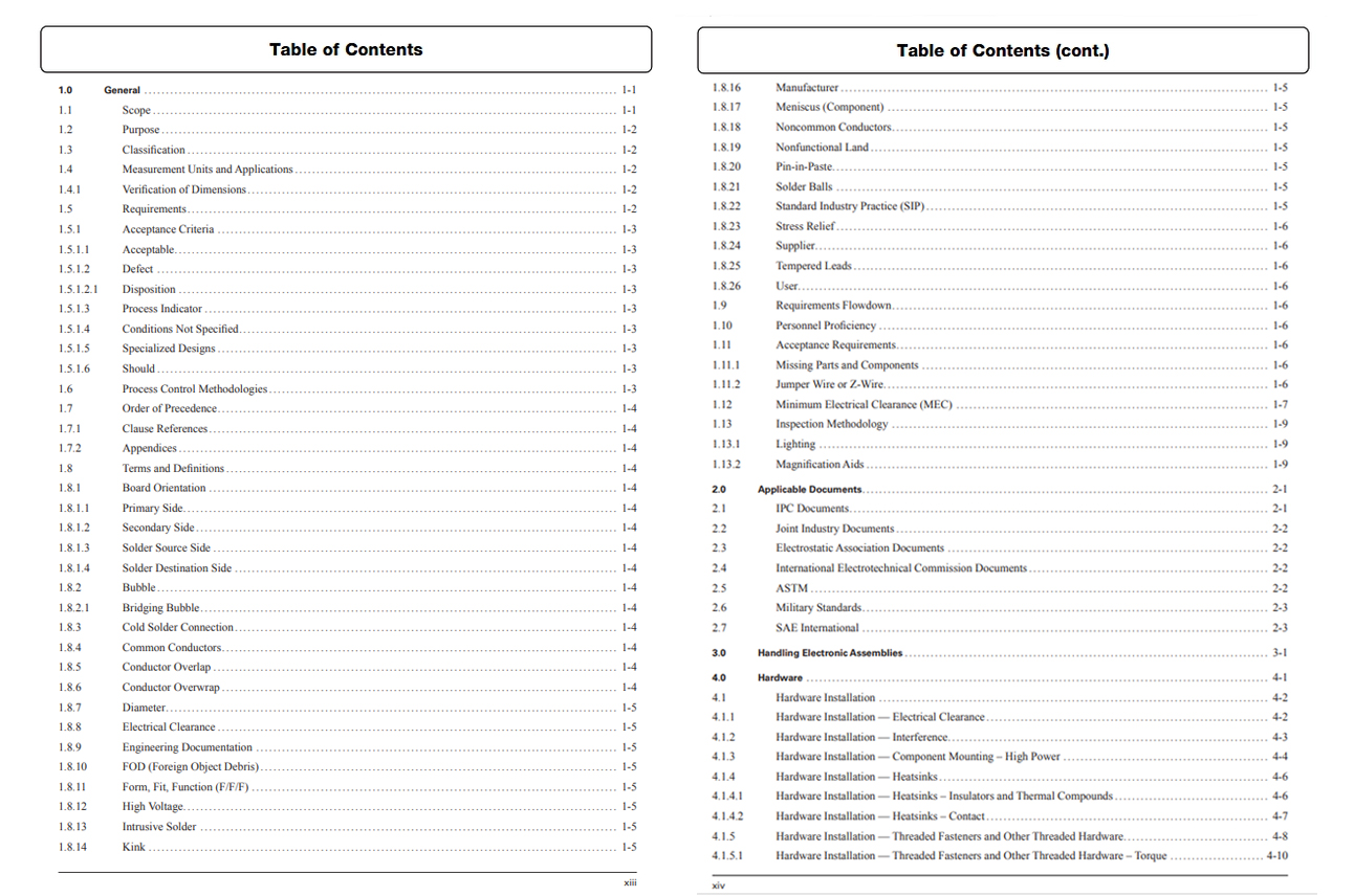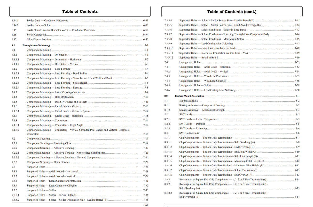 또한, 전기 및 전자 어셈블리의 제조에 대한 승인 요건을 제시합니다. 역사적으로 전자 어셈블리 표준에는 원칙과 기술을 다루는 보다 포괄적인 사용 지침서가 포함되어 있었습니다. 본 표준의 권고 사항과 요건을 보다 완전하게 이해하기 위해, IPC-HDBK-001, IPC-AJ-820 및 J-STD-001과 함께 참고할 수 있습니다.